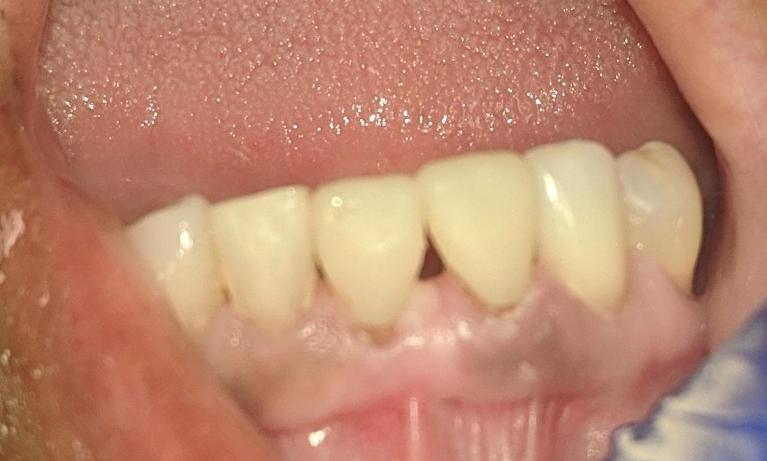 This patient had a cavity that went below the gums. We had to remove some of the gums with a laser and place a strong white filling on it.
