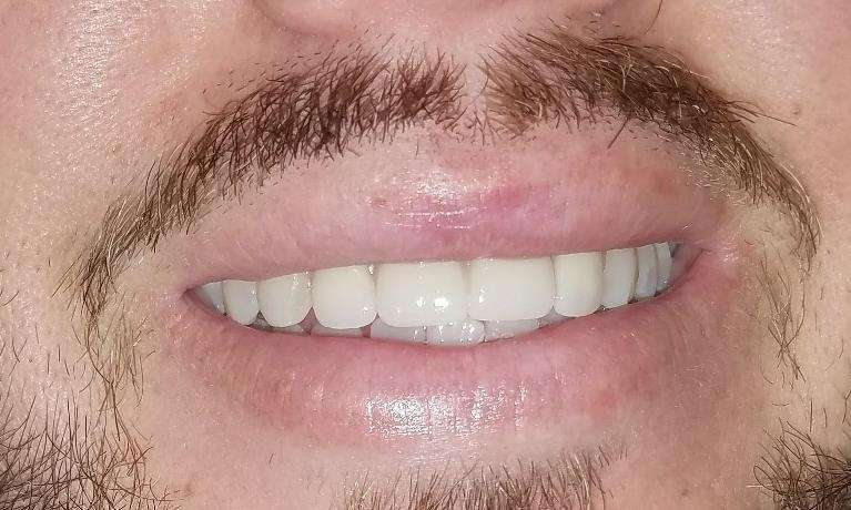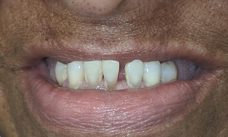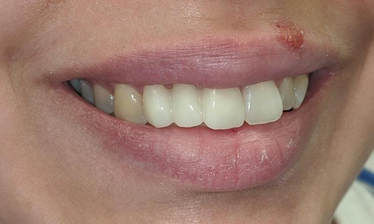 This patient finally healed after six months and was ready for a new set. She was clearly happy with the end result.