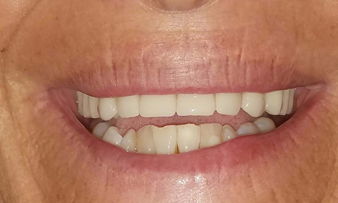 This patient has hated her mouth for the longest time. With new top teeth, she feels much happier as she isn't embarrassed anymore.