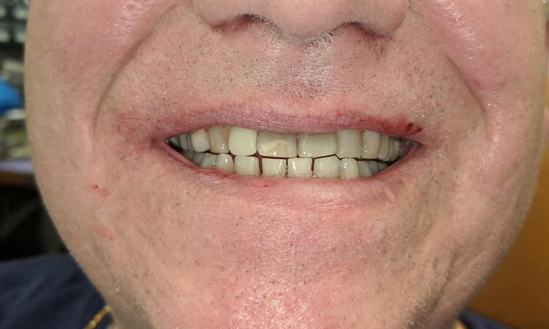 This patient's right tooth went south on him and he needed a tooth bad quickly to replace the area. With a one day smile, we were able to get him back to where he needed to be. He will come back in six months after he heals to have a well made partial denture.