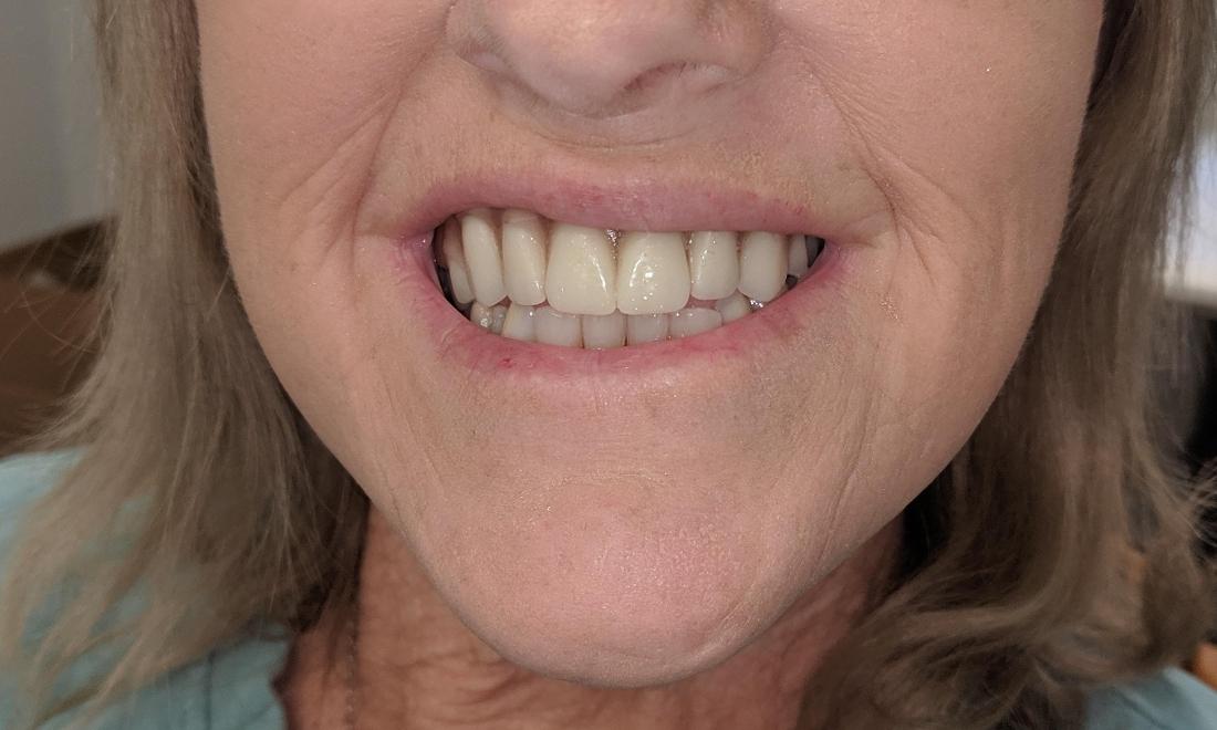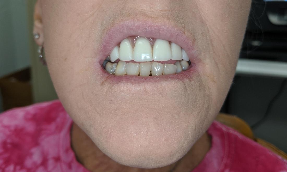This patient did not like her bite on her current denture. We opted to make her a new one with her favorite bite using a 3D printed denture. We were able to do all of this within one day so she was able to leave smiling quickly.