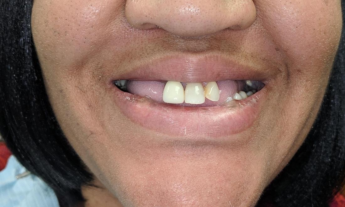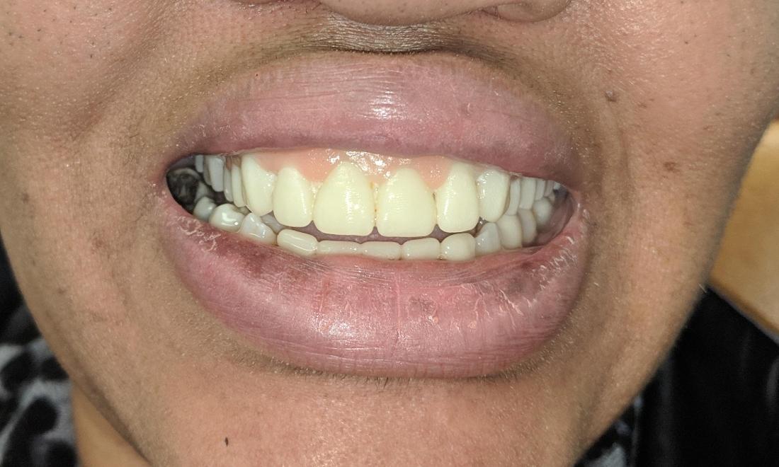 This patient tried hard to keep her teeth in good shape, but they were not healthy any longer. We opted to remove the teeth on the top to do a one day denture with the knowledge that we will come back in six months for a regular denture. She was happy with the results.